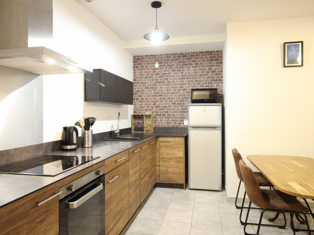 Au 3ème étage avec ascenseur, l'appartement se compose d'une pièce à vivre avec cuisine équipée comprenant plaque induction, hotte, four, micro-ondes, lave-vaisselle...