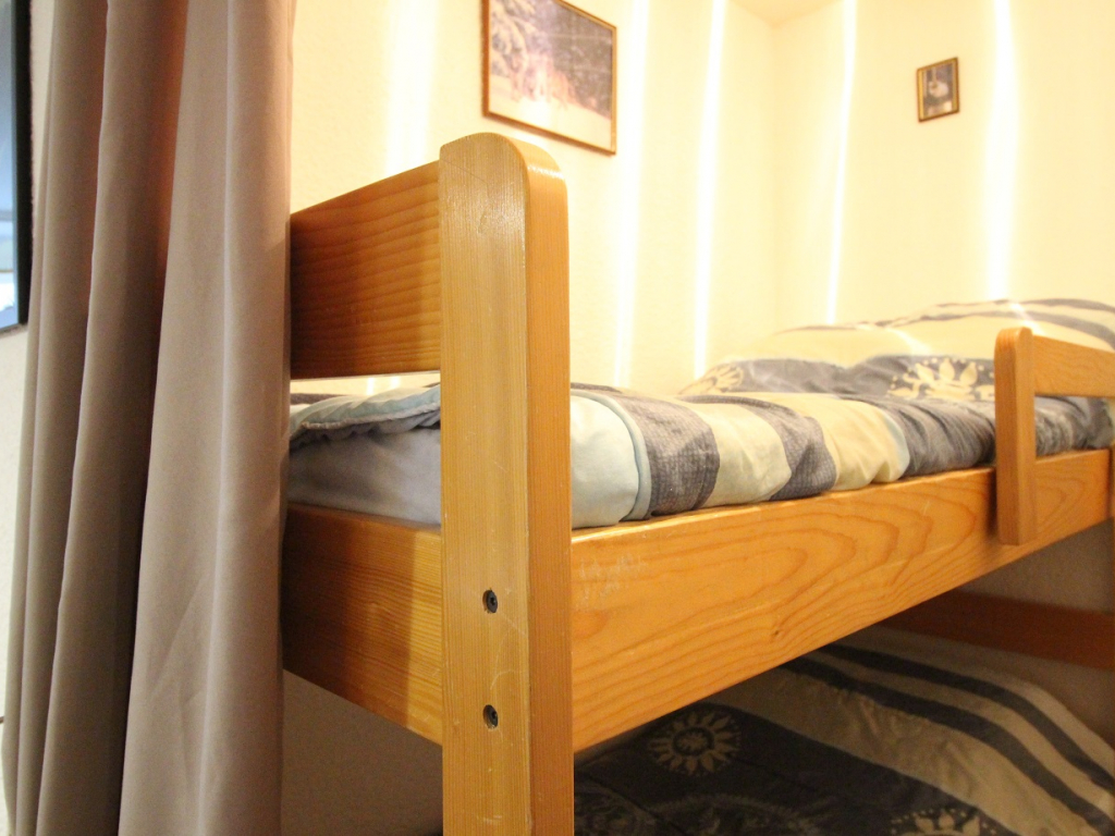 un espace chambre avec un lit en 140 et un coin nuit avec un lit superposé (2x90).