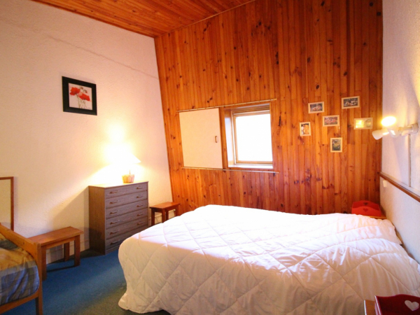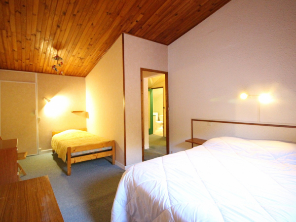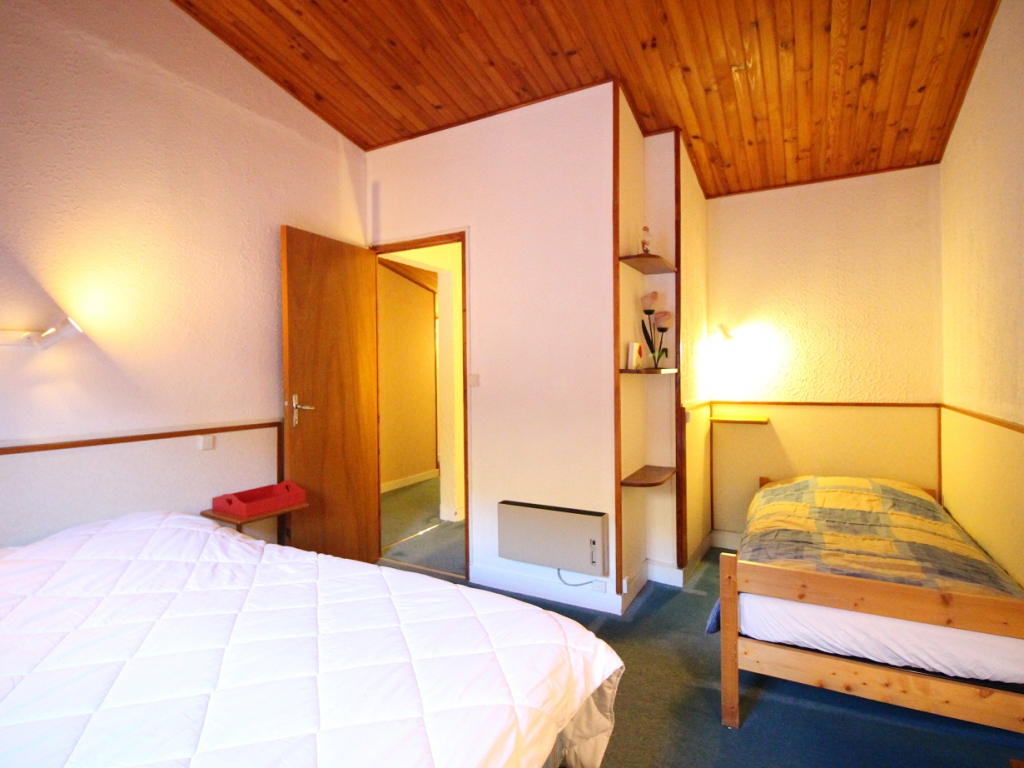 A l'étage, une chambre avec un lit 140, un lit 90 et un lit bébé,
