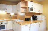 Il se compose d'une salle à manger avec cuisine ouverte équipée : plaques électriques, hotte, four, réfrigérateur/congélateur, lave vaisselle, micro-ondes....