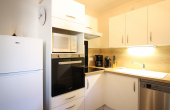 Il se compose d'un séjour avec canapé convertible ouvrant sur une loggia, une kitchenette équipée avec plaque vitrocéramique 4 zones, hotte, four, réfrigérateur grand modèle avec congélateur, lave-vaisselle, micro-ondes...