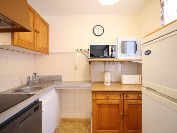 Il se compose d'une pièce à vivre, un coin cuisine équipée avec plaque vitrocéramique, four, micro-ondes, réfrigérateur grand modèle avec congélateur, lave-vaisselle...