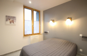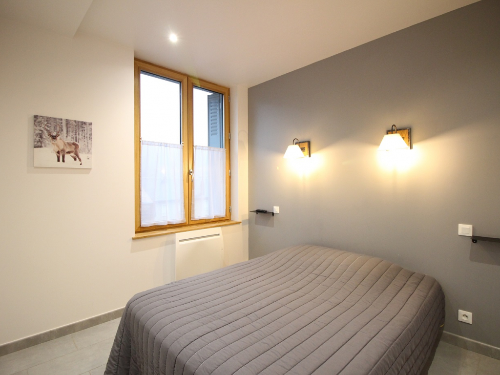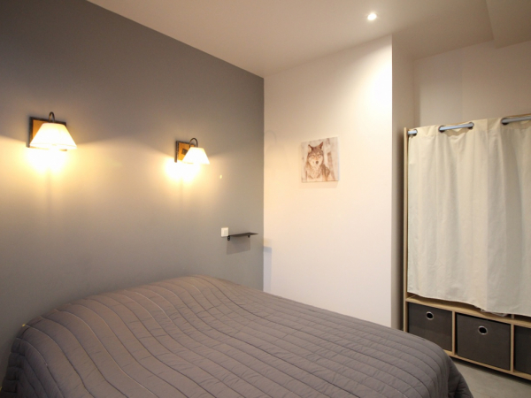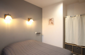 Une chambre avec un lit 140x190 et télévision, un canapé lit dans le salon.