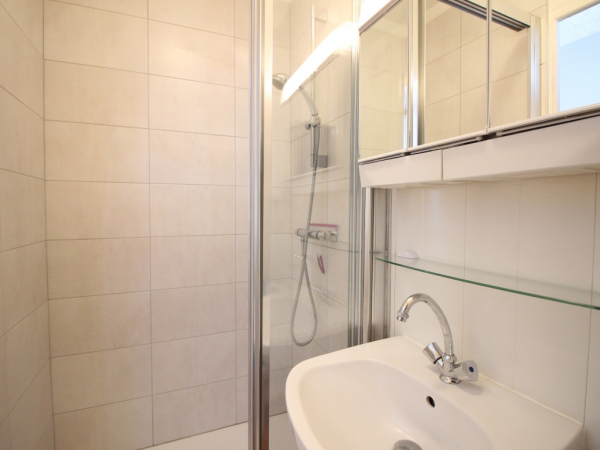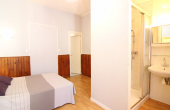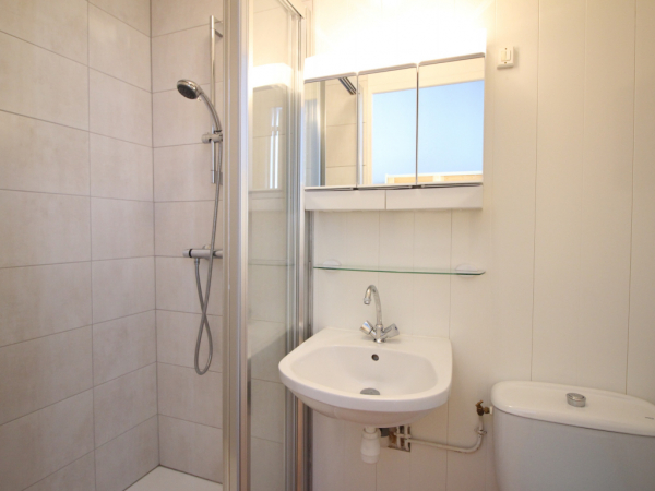 Une chambre avec un lit en 140 et salle d'eau (douche) attenante.