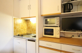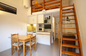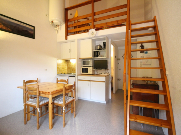 Ce studio se compose d'une pièce à vivre avec avec un clic-clac 140, kitchenette US aménagée : 2 plaques électriques, four, réfrigérateur top, micro-ondes...