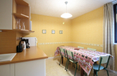 Il se compose d'une salle à manger avec cuisine ouverte équipée : plaques électriques, hotte, four, réfrigérateur/congélateur, lave vaisselle, micro-ondes....