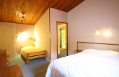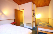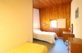 A l'étage, une chambre avec un lit 140, un lit 90 et un lit bébé,