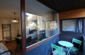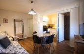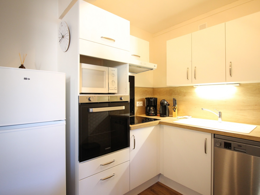 Il se compose d'un séjour avec canapé convertible ouvrant sur une loggia, une kitchenette équipée avec plaque vitrocéramique 4 zones, hotte, four, réfrigérateur grand modèle avec congélateur, lave-vaisselle, micro-ondes...