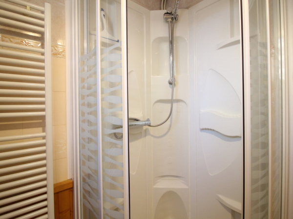 Une salle d'eau (douche) avec lave-linge.